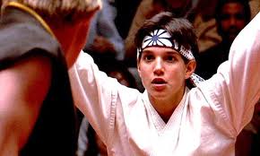 There you are…. Looking up at a cheering crowd, in the middle of the All-Valley Karate Tournament, standing across the mat from the same prick that, just a month or so earlier, forced a kiss on your super-hot girlfriend at a country club while you watched from the kitchen–resulting in the double humiliation of having a bunch of rich, white people laugh and point at you, as well as getting spaghetti sauce stains on your Members Only jacket and your one nice shirt. You spent this night kicking ass to an incredibly ass-kicking song called You’re The Best, but just a few minutes earlier, your best friend (who happens to be a Japanese handyman and Veteren of a foreign war) just rubbed his hands together really fast and then fixed your sprained knee. Now, here you are, one point away from winning the tournament and beating that jackass Johnny Lawrence, who has been warned for targeting your injured knee. Your knee is throbbing now–you can barely put any weight on it. You think back to the words Mr. Miyagi spoke about the crane kick…. “If do right, no can defense.” You raise your arms and your injured leg. Somewhere, on the sidelines, you can just feel Mr. Miyagi nodding in approval. The referee restarts the match, and inexplicably, Johnny tries to knock you down by hitting your foot with his face. Ali with an i runs to to you (wearing that cute little grey sweater with the preppy yellow Polo collar peeking out, just to remind you that she lives in The Hills), Johnny hands you the trophy and confesses that the better man won with the words “You‘re alright Larusso,” Mr. Miyagi smiles, and you feel no pain….