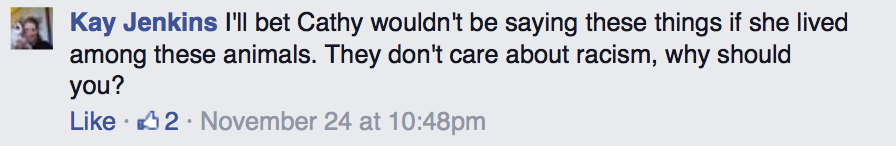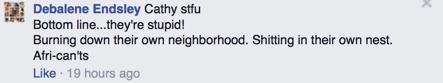 While I agree in part with your point I think this post and other conversations like it are worthy of a deeper view. Of course hate and biggotry exists in all races and creeds and people need accountability, but the bigger issue is the structural racism that needs repair. This is not about individual “racists” – it is a structural problem. The types of FB comments displayed here are just a glimpse into a much bigger issue…cultural racism and white privilege so widely accepted that folks don’t think twice about saying things with their names and faces attached. Not with white hoods on.