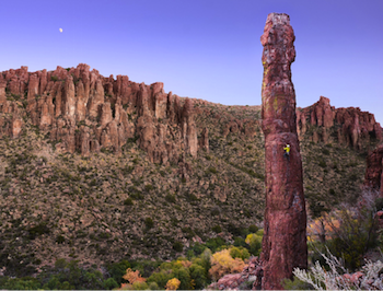 This is part of Oak Flat. The yellow dot on that spire is a climber. Why in the world would we destroy this land for some copper?