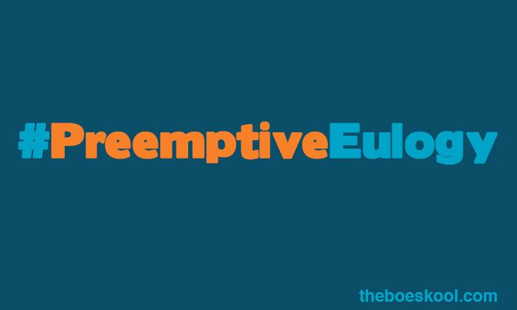 Telling someone how amazing they are, how much we love them, how they touched our hearts and changed the course of our lives–The time for saying all these things is NOT when a person is lying in a casket. So here’s what I want you to do: I want you to write SOMETHING to tell a person how special they are to you, and I want you to do it publicly. It can be a Tweet, it can be a Facebook status, it can be on Instagram, it can be a blog post, if you have a blog…. Whatever. And then hashtag #PreemptiveEulogy so people can find them all in one spot. Of course you can tell the person to their face as well, but there is something special about standing up and saying, “This person is fantastic and inspiring and amazing, and I want to make sure everyone knows it.” Enough waiting for people to die to say how we feel….