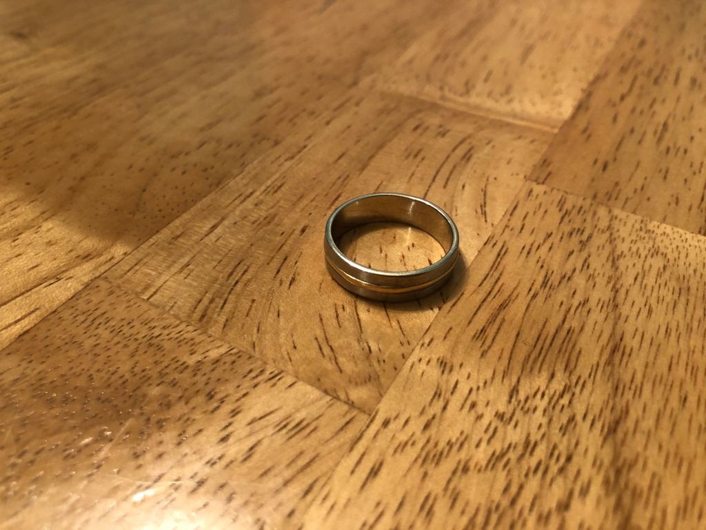 This is my wedding ring. I didn’t used to wear it all the time, because I had a bump on my knuckle, and it was too tight. I got it resized after she left… If that gives you any insight into my headspace.