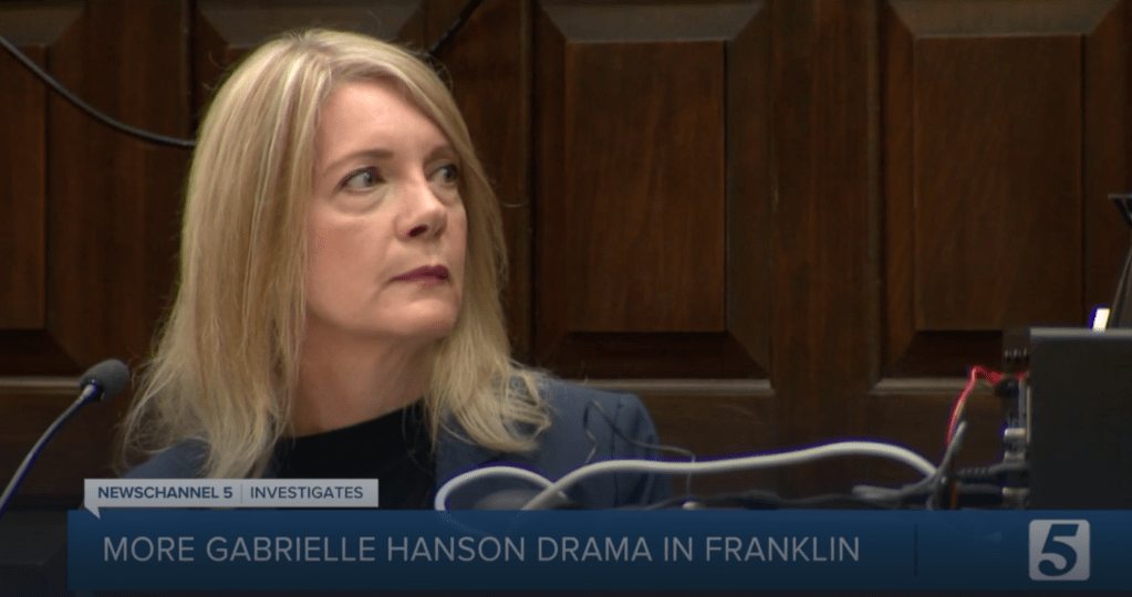 The first time I heard of Gabrielle Hanson was after the Covenant School shooting. Three kids and three adults were murdered in a school shooting, and immediately after, every quasi-religious nutjob & QAnon-adjacent clown in the area started spreading rumor & lies & conspiracy theories about who was killed & why it happened. Within this disgusting noise, I heard of a Franklin Alderman (I admit I have no idea what an Alderman does, but I know it’s an elected figure) who said she KNEW it was going to happen before it happened. That Alderman was Gabrielle Hanson. She said on a podcast that she told an officer that “her GUT told her there was going to be an active shooter” and that when the shooting happened, she was “not surprised.” She went on to say that “within 30 minutes of the shooting, [she] had the whole story,” and then detailed allegations of a “love triangle.” Here is a recording of her getting totally chewed out & shamed (by a host of this area’s far-right talk radio station, no less) for her lies & gossipy falsehoods about the Covenant shootings.